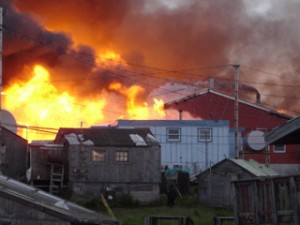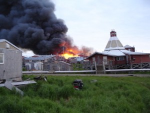 HOOPER BAY, AK (August 9, 2006) – The tough task of rebuilding faces residents following the devastating fire last week that gutted this remote Alaskan village. Following are images taken as the blazing inferno wreaked havoc, destroying the elementary and high schools, at least one business, and more than a dozen homes.