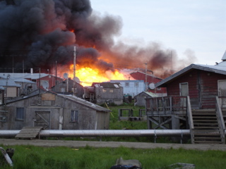 HOOPER BAY, AK (August 9, 2006) – The tough task of rebuilding faces residents following the devastating fire last week that gutted this remote Alaskan village. Following are images taken as the blazing inferno wreaked havoc, destroying the elementary and high schools, at least one business, and more than a dozen homes.