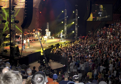 All of the equipment was transported to Knoxville, Tennessee, in four tractor trailers. The lighting and audio equipment came from Nashville. The video equipment originated in Chicago.